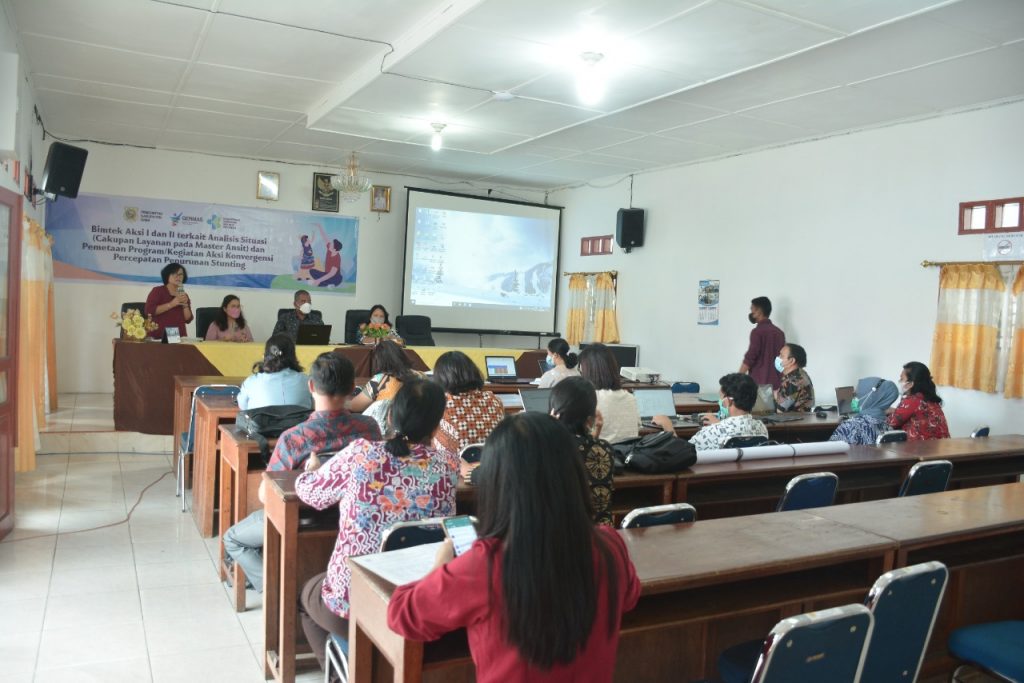 IGNews | Dairi – Dalam rangka percepatan penurunan stunting di Kabupaten Dairi, Pemerintah Kabupaten Dairi mengadakan Bimtek Aksi I dan II terkait Analisis Situasi (cakupan layanan pada master ansit) dan Pemetaan Program/ Kegiatan Aksi Konvergensi Percepatan Penurunan Stunting, Kamis (24/3/2022) di Aula kantor Bappeda.