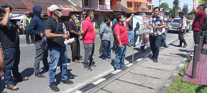 IGNews | Dairi – GM PPTSB gelar aksi unjuk rasa di depan Polres Dairi terkait penganiayaan terhadap Sahman Girsang. Dalam orasinya GM PPTSB mengatakan tindak kekerasan dan penganiayaan merupakan hal biadap yang tidak dapat didiamkan dengan alasan apapun, Selasa (29/3/2022).