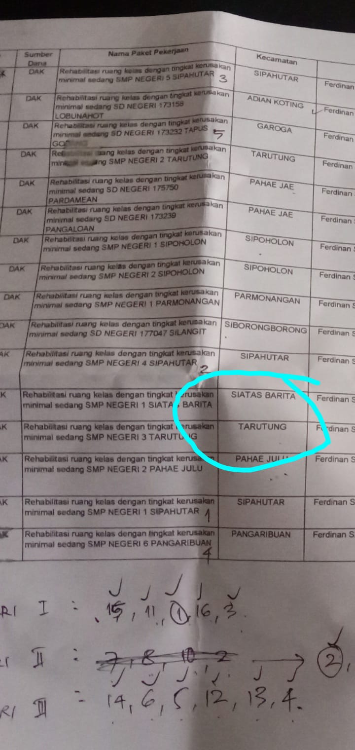 Lanjut Djonggi Napitupulu mengucapkan “Juga kita menemukan adanya perusahaan pemenang tender diduga kuat menjual paket tersebut kepada pihak ketiga, tentu patut kita duga kuat bahwa pada pengadaan barang dan Jasa adanya dugaan terjadi praktek tindak pidana gratifikasi. Kegiatan ini juga dari Dana Alokasi Khusus dengan nilai miliaran rupiah”.