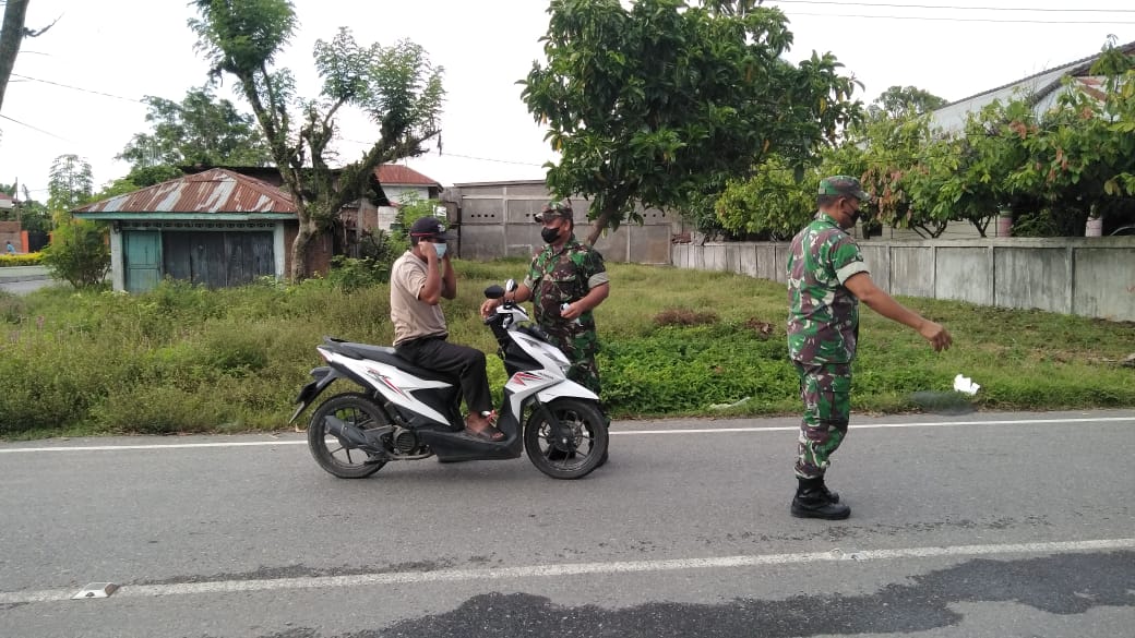 Kegiatan itu, Sertu Halpiansyah bersama rekan lainnya menerapkan prokes pada masyarakat yang hendak melintasi Posko Pengawasan Pembatasan Kegiatan Masyarakat (PPKM) skala mikro di Desa Pulonas.
