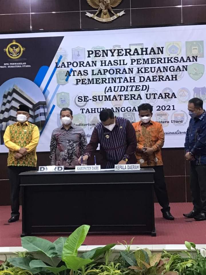 Prestasi ini merupakan yang kedelapan kalinya diraih oleh Pemkab Dairi. Penyerahakan WTP ke- 8 ini diserahkan langsung Kepala BPK Perwakilan Sumut, Eydu Oktain Panjaitan di Gedung BPK Sumut, Rabu (27/4/2022).