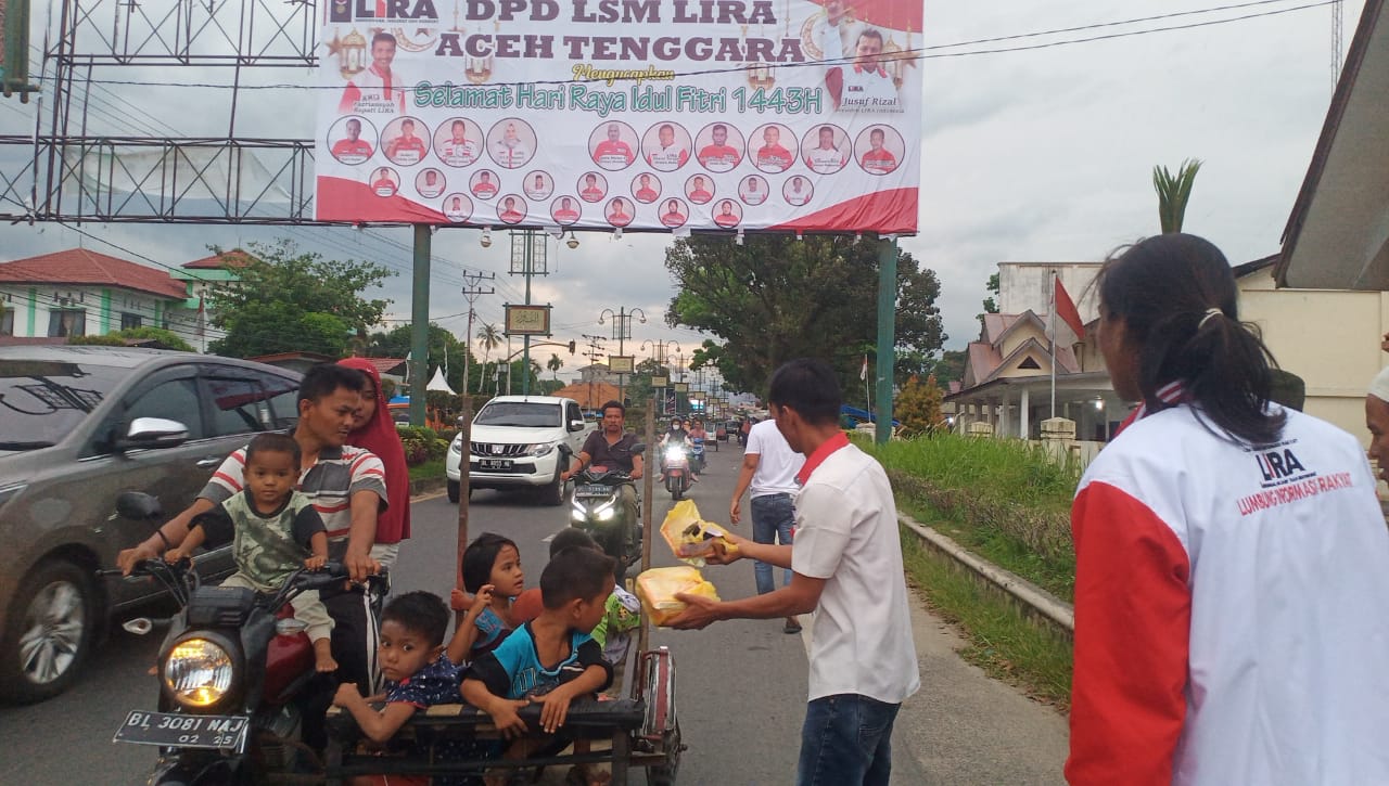 IGNews | Agara – Ketua beserta seluruh anggota DPD LSM LIRA Aceh Tenggara (Agara.red) bagi bagi 1000 paket takjil kepada pengguna jalan lintas Provinsi, Sabtu sore (30/4/2022).