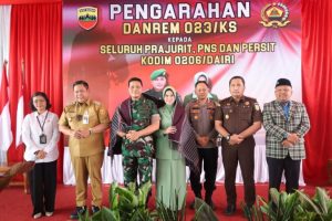 Komandan Korem 023/ Kawal Samudera, Kolonel Inf Dody Triwinarto SIP, M.Han didampingi Ketua Persit KCK Koorcabrem 023 PD I/ BB  bersama rombongan melaksanakan saat kunjungan kerja ke Kodim 0206/ Dairi, Senin (9/5).