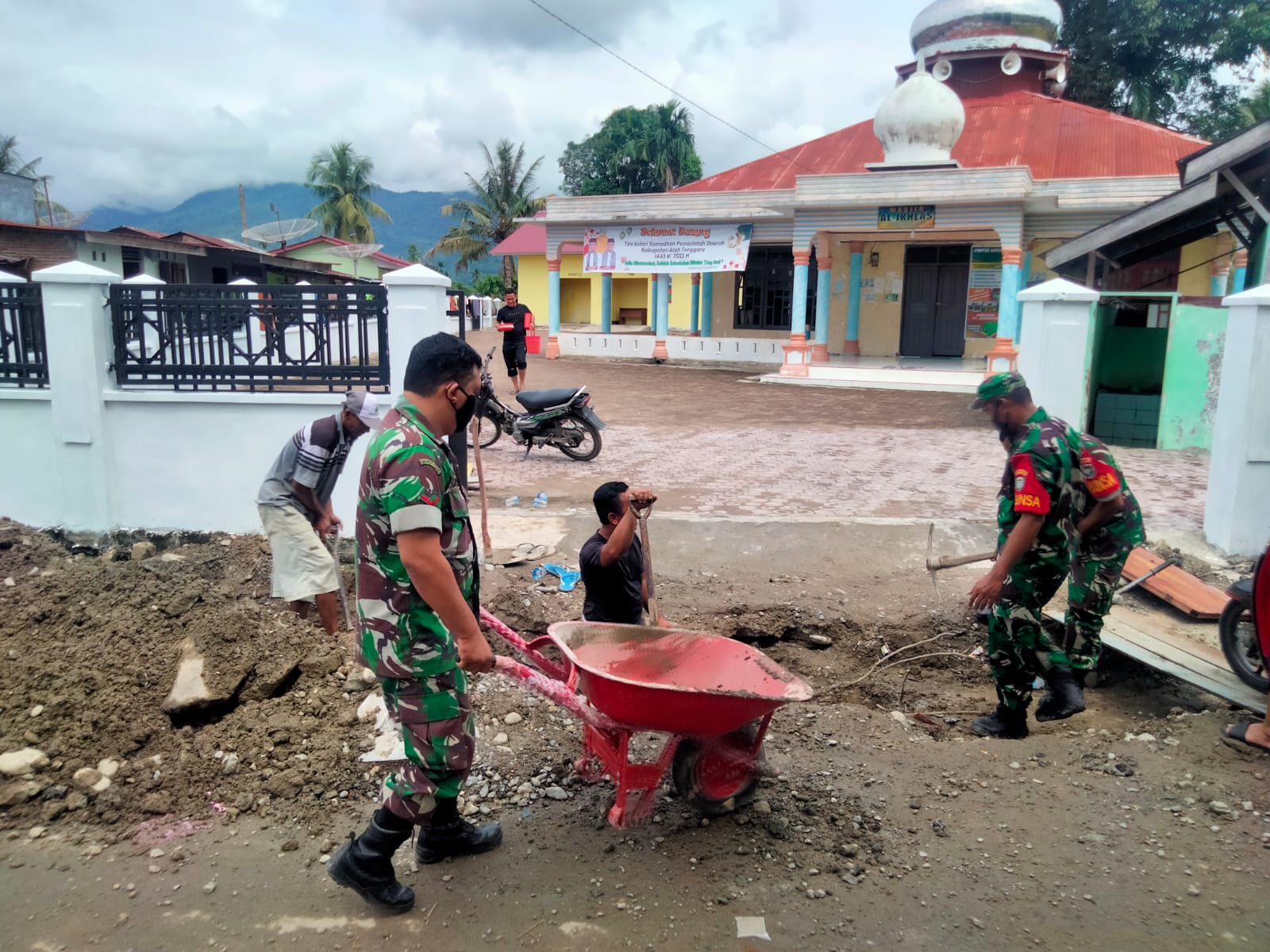 IGNews | Agara – Babinsa Posramil Lawe Bulan jajaran Kodim 0108/ Agara, Sertu Mualim bersama rekan melaksanakan kerja bakti bersama warga memperbaiki gorong gorong di Masjid Al- Ikhlas Desa Kuta Buluh Botong, Kecamatan Lawe Bulan, Kabupaten Aceh Tenggara, Senin (9/5/2022).