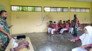 IGNews | Agara – Serka Iskandar Pelis, bersama rekan Babinsa Posramil Bukit Tusam jajaran Kodim 0108/ Agara, berikan wawasan kebangsaan (wasbang) di Sekolah Dasar (SD) Lawe Dua Desa Lawe Dua Kecamatan Bukit Tusam Kabupaten Aceh Tenggara, Jumat (13/5/2022).