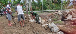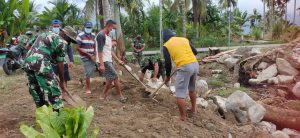 IGNews | Agara – Bina pemuda untuk melaksanakan olahraga bersama, anggota Koramil 07/ Semadam jajaran Kodim 0108/Agara, melaksanakan gotongronyong bersama masyarakat meratakan timbunan tanah untuk pembuatan lapangan bola voli di Desa Semadam Asal Kecamatan Semadam Kabupaten Aceh Tenggara, Jumat (13/5/2022).