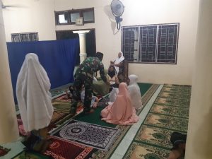 IGNews | Agara – Babinsa Koramil 02/ Bambel jajaran Kodim 0108/ Agara melaksanakan pembagian masker gratis di Masjid Jami’ Desa Bambel Gabungan, Kecamatan Bambel, Kabupaten Aceh Tenggara, Sabtu (14/5/2022).