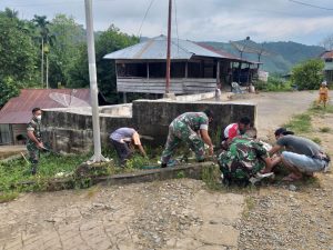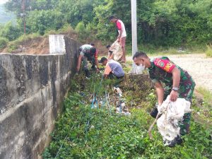 IGNews | Agara – Cipta lingkungan bersih dan asri, Babinsa Posramil Leuser jajaran Kodim 0108/Agara, Serma Wandi Rumah Horbo bersama masyarakat Desa Bintang Alga Musara, Kecamatan Leuser, Kabupaten Aceh Tenggara, melaksanakan gotongroyong, Sabtu (14/5/2022).