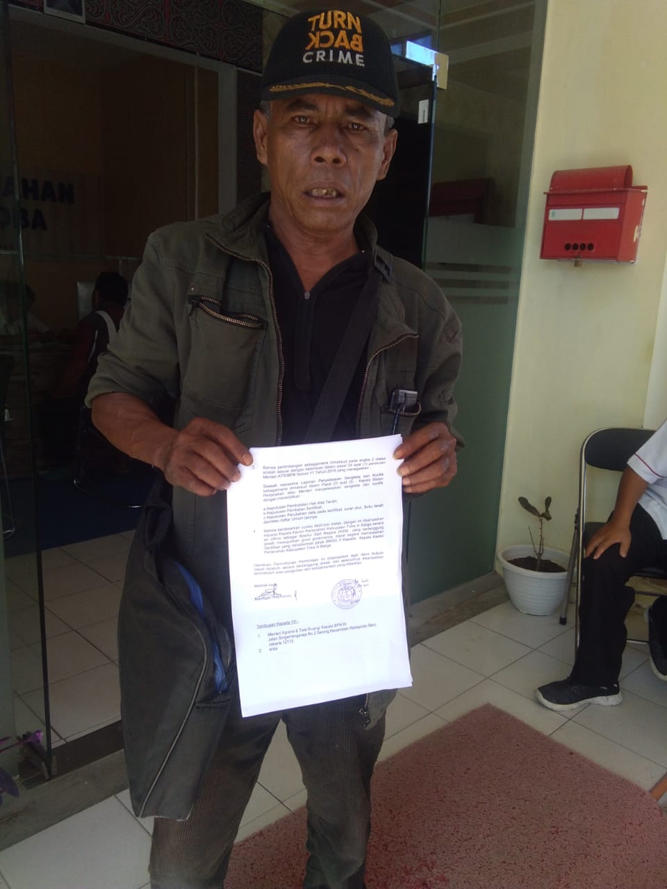 IGNews | Toba – Maringan Napitupulu surati Kepala Kantor Pertanahan Kabupaten Toba berikut tembusan kepada Menteri Agraria dan Tata Ruang/ Badan Pertanahan Nasional Republik Indonesia, perihal permintaan agar dibuat pembatalan sertifikat terhadap Badan Wilayah Sungai Sumatera II atau BWSS II karena hal tersebut adalah mengandung cacat hukum administrasi. Hal ini dikatakan kepada reporter Indigonews saat dijumpai di Kantor Pertanahan Kabupaten Toba, Senin (23/5/2022).