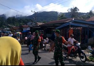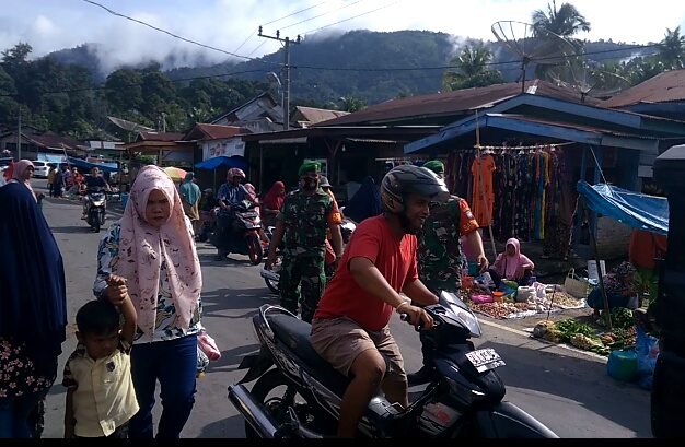 IGNews | Agara – Babinsa Posramil Ketambe, Sertu Musliadi bersama Serda Bilser dan Serda Hendra Putra turun kejalan membantu mengatur lalu lintas di Pasar Senin, Desa Jongar Asli, Kecamatan Badar, Kabupaten Aceh Tenggara, Selasa (24/5/2022).