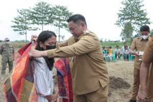 Bupati yang hadir saat itu, menyampaikan rasa haru atas inisiasi pembangunan fasilitas atau ruang belajar khususnya bagi petani ini.