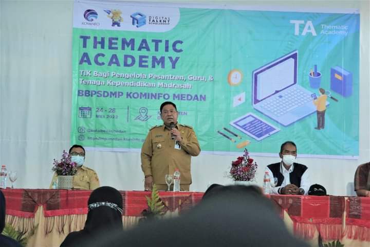 IGNews | Dairi – Setelah beberapa kali mengadakan pelatihan digital bagi pelaku Usaha Mikro Kecil dan Menengah (UMKM) kali ini Balai Besar Pengembangan Sumber Daya Manusia dan Penelitian Komunikasi dan Informatika (BBPSDMP) Kominfo Medan menyelenggarakan kegiatan Pelatihan Digital Talent Scholarship Thematic Academy (DTS TA) Tahun 2022 bagi pengelola pesantren, guru dan tenaga kependidikan madrasah di aula SMKN 1 Sidikalang, Selasa (24/5/2022).
