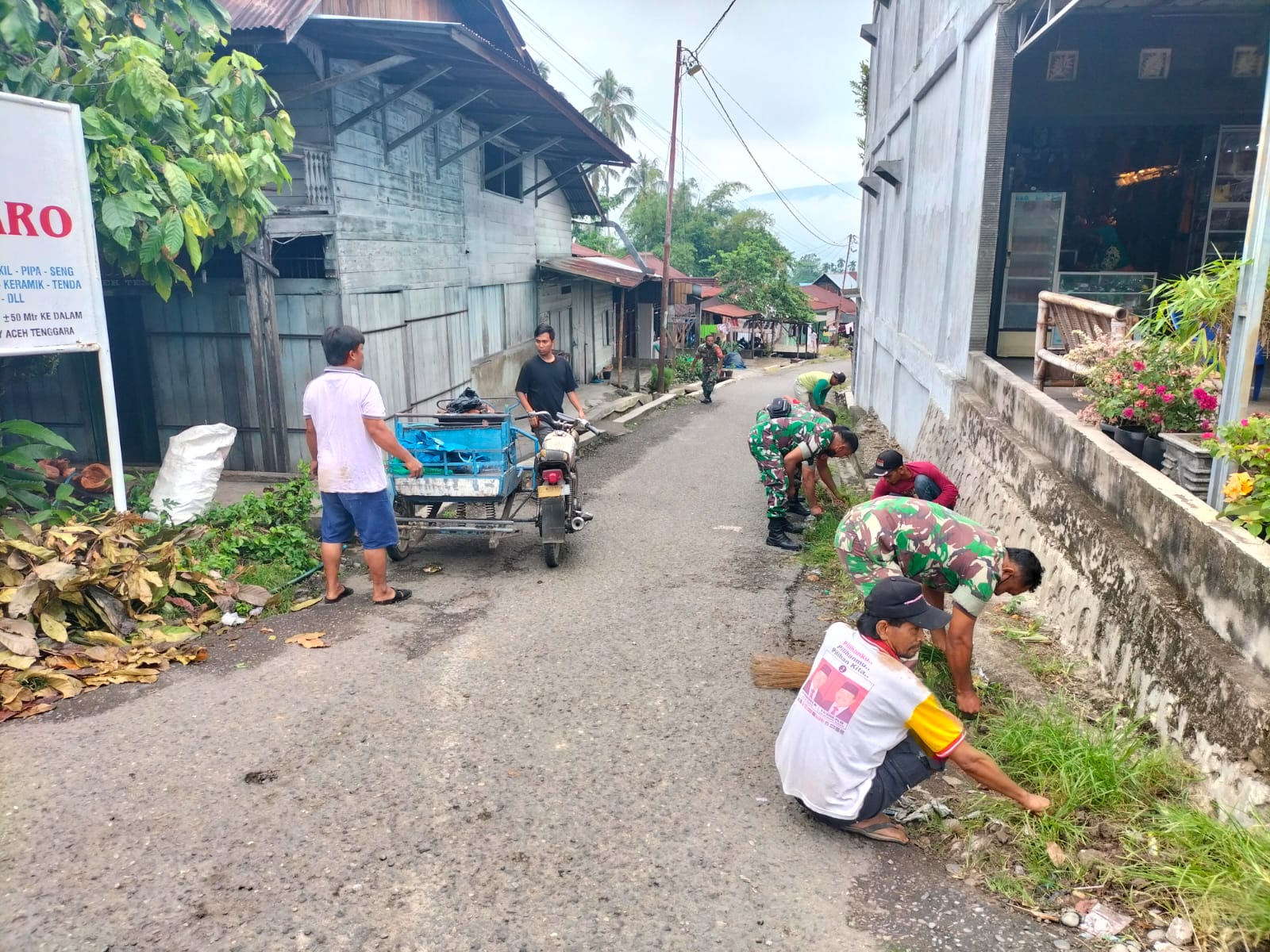 Minggu Bersih Babinsa Babul Makmur dan Warga Bersihkan Jalan