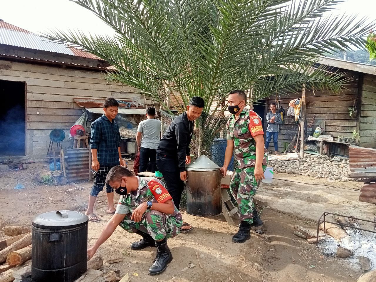 IGNews | Agara – Babinsa Posramil Louser Serda Jotsul bersama Serda Hutabarat dan KKopda Aswandi melaksanakan kegiatan bersama masyarakat membantu menyiapkan acara sunah rosul anak dari Burhan di Desa Alga Musara, Kecamatan Louser, Kabupaten Aceh Tenggara, Senin (30/5/2022).
