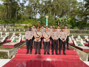 IGNews | Taput – Untuk memperingati hari ulang tahun Bhayangkara ke- 76 yang jatuh pada tanggal 1 Juli 2022, Polres Tapanuli Utara melaksanakan kegiatan ziarah ke Taman Makam Pahlawan (TMP) Tangsi Tarutung, Kamis (30/6/2022).