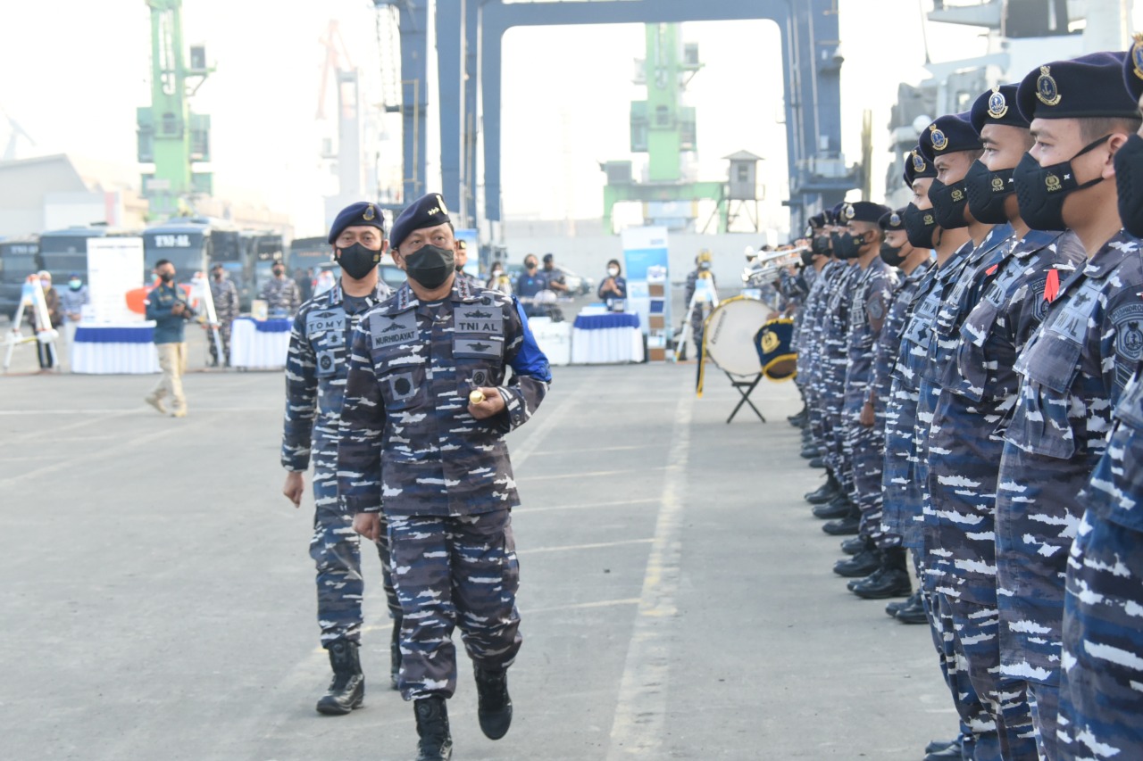 IGNews | Jakarta – Komandan Pusat Hidro – Oseanografi TNI Angkatan Laut (Danpushidrosal), Laksamana Madya TNI Nurhidayat melepas Manuvra Lapangan (Manlap) Latihan Operasi Survei dan Pemetaan Hidro-Oseanografi (Hidros) TA 2022 di Dermaga Jakarta Internasional Container Terminal (JICT) 2, Tanjung Priok – Jakarta Utara, Kamis (28/7/2022).