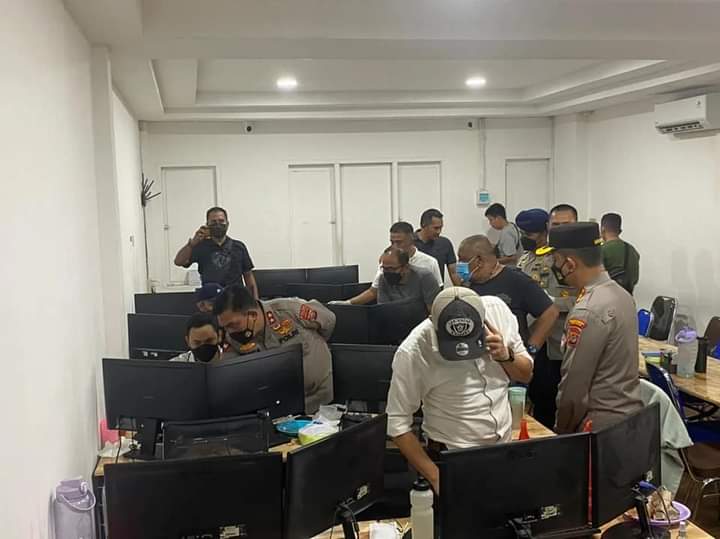 Terpantau ratusan unit komputer dan laptop yang diduga digunakan untuk menyebar situs online judi diamankan dan masih terus didalami oleh tim gabungan. Red