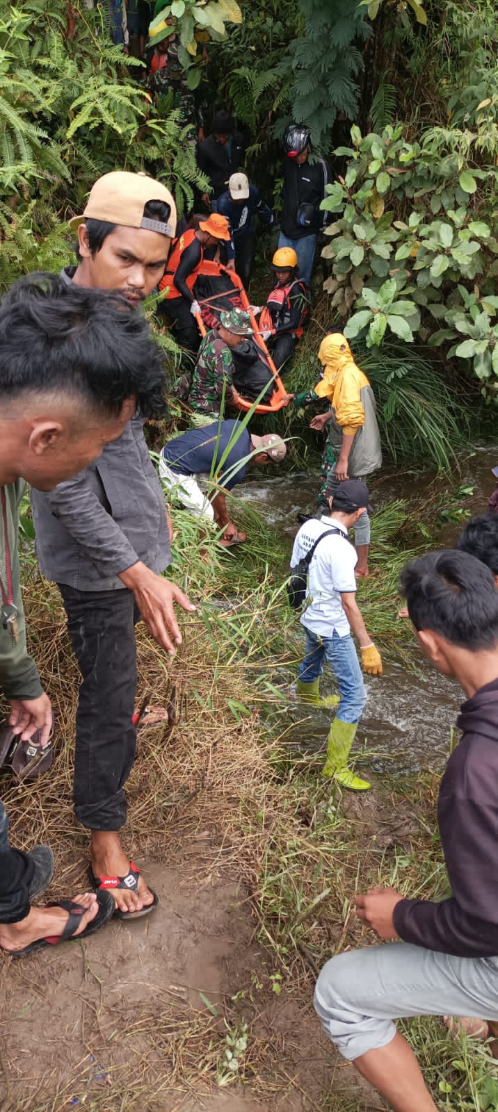 Namun hari itu hingga malam hari korban tidak di temukan. Selasa ( 30/8) sekitar pukul 09.00 Wib, korban di temukan di sungai dan sudah meninggal dunia dan badannya bengkak. Lalu korban pun di evakuasi dari sungai dengan menggunakan kantong jenazah dan dilakukan Visum.
