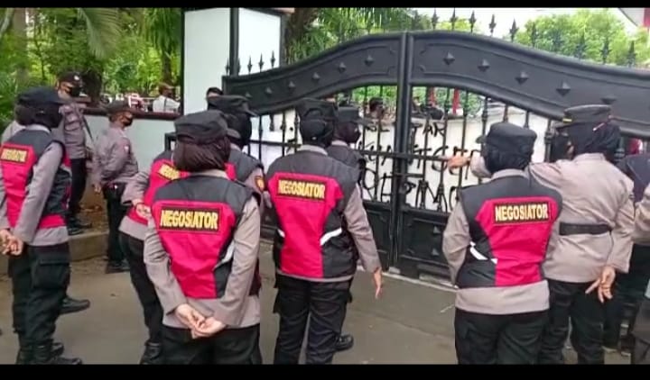 IGNews | Pekalongan – Polwan negosiator demo menjadi barisan terdepan dalam proses pendekatan kepada masyarakat yang akan menyalurkan aspirasinya, seperti pada aksi yang digagas Aliansi Mahasiswa dan Gerakan Masyarakat Pekalongan Raya berlokasi di depan kantor Dewan Perwakilan Rakyat Daerah Kota Pekalongan, masa bergerak longmarch dan meneriakan yel yel penolakan kebijakan kenaikan BBM yang telah diputuskan Pemerintah, Selasa (13/9/2022).
