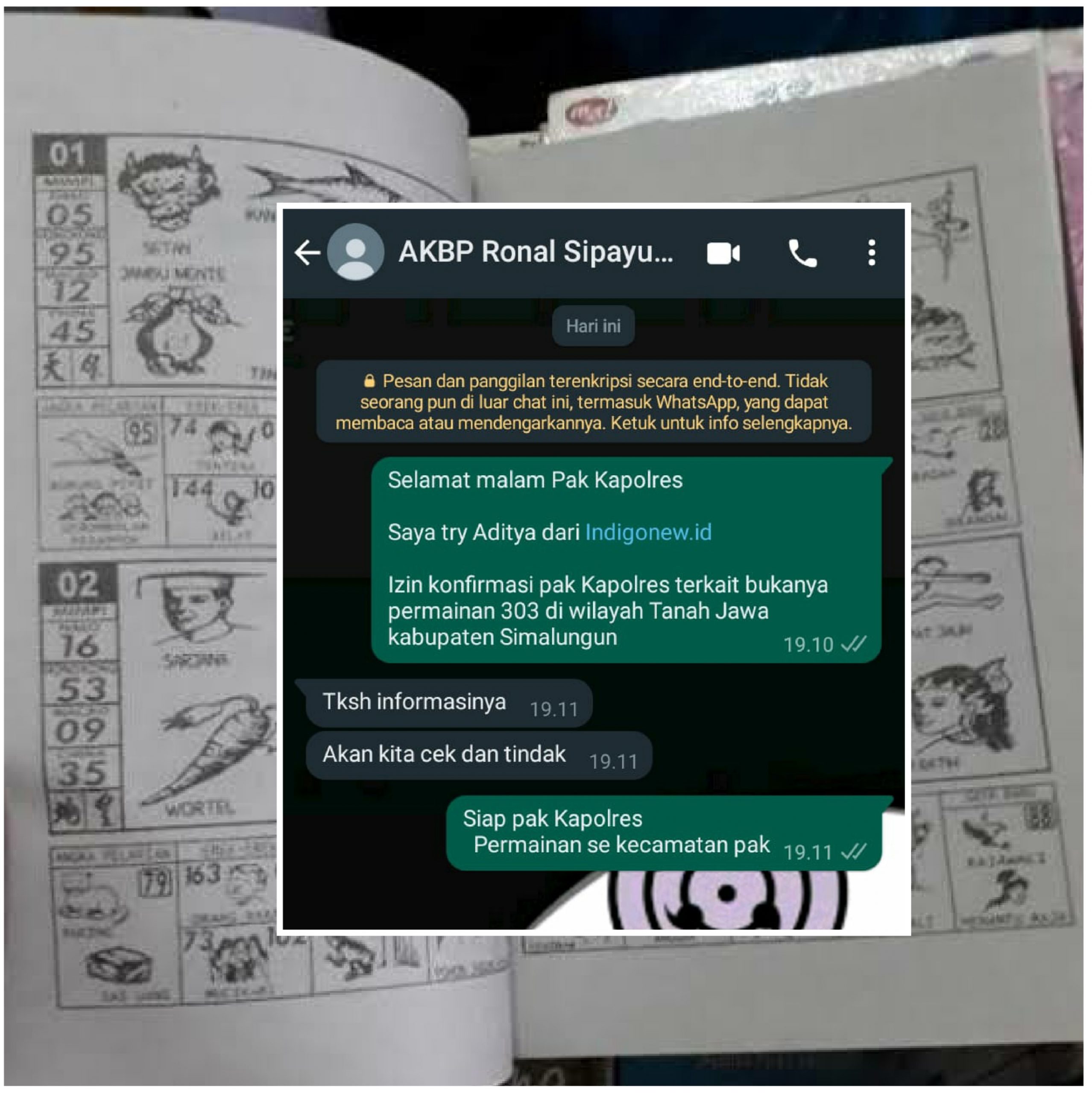 Kapolres Simalungun, AKBP. Ronald FC Sipayung kepada reportet Indigonews melalui pesan WhatsApp ketika dikonfirmasi mengatakan “Tks Informasinya. Akan kita cek dan tindak” balasnya singkat, Rabu (14/9/2022) pukul 19.11 Wib. Try/ Tim