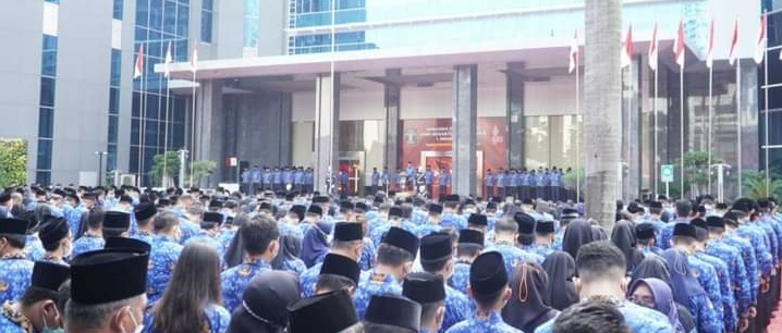 IGNews | Jakarta – Upacara peringatan Hari Kesaktian Pancasila Tahun 2022 diselenggarakan secara tatap muka di Kantor Pusat Kementerian Hukum dan HAM. Wakil Menteri Hukum dan HAM, Prof. Edward Omar Sharif Hiariej hadir sebagai Inspektur Upacara. Direktur Jenderal HAM, Mualimin Abdi turut hadir beserta segenap jajaran Ditjen HAM yang bertugas dalam upacara tersebut, Sabtu (1/10/2022).