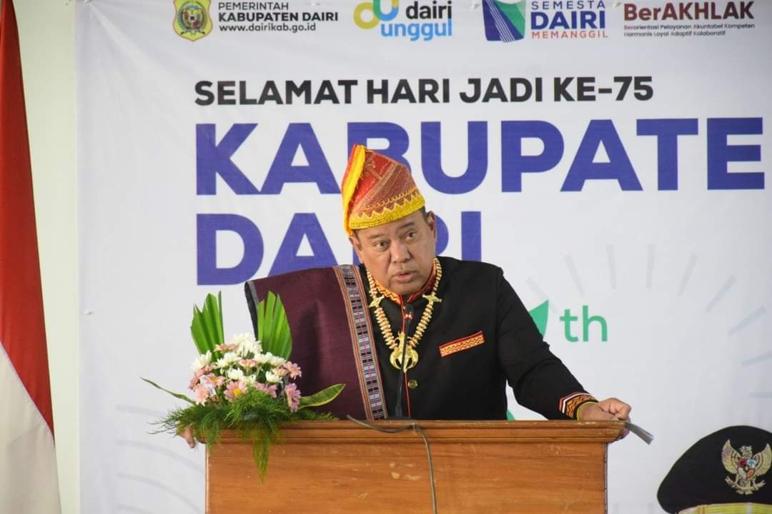 Bupati berharap, melalui momentum hari jadi ini, Kabupaten Dairi bangkit lebih cepat setelah diguncang pandemi Covid- 19 dan semakin unggul dengan program-program yang sudah direncanakan.