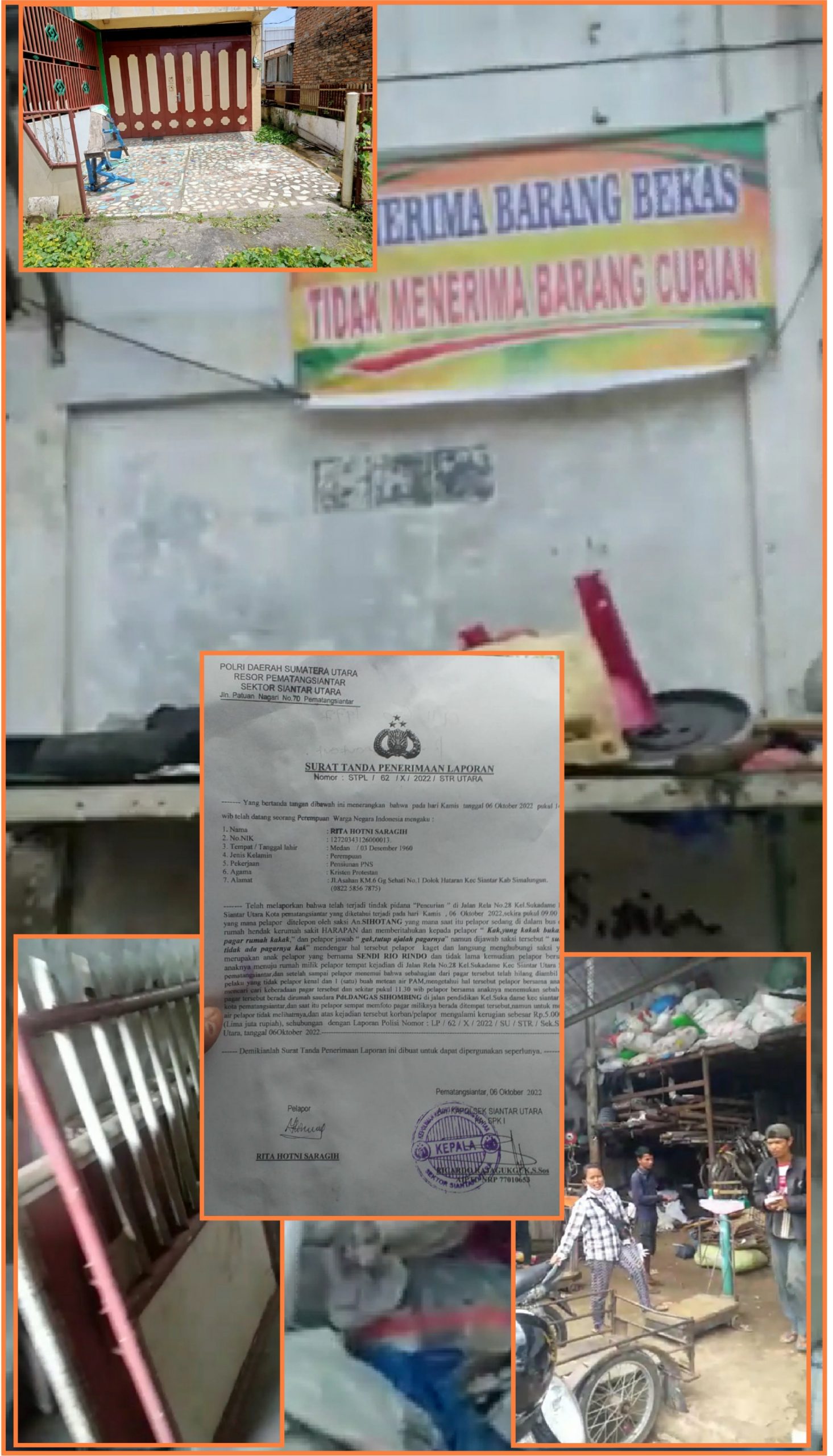 Korban kerugian atas pencurian pagar rumah, Rita Hotni Saragih melalui anaknya Sendy Purba melalui selular membenarkan telah membuat LP ke Polsek Siantar Utara dengan Nomor: STPL/62/X/2022/ STR Utara, atas hilangnya pagar ruko mereka yang beralamat dijalan Rela No. 28 Lorong 3 Parluasan, Siantar Utara, Kota Pematangsiantar – Sumatera Utara, Kamis (6/10/2022).