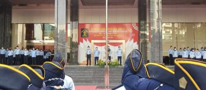 IGNews | Jakarta – Direktur Jenderal HAM, Mualimin Abdi memimpin apel pagi di lingkungan Kementerian Hukum dan HAM yang diselenggarakan secara langsung di Kantor Pusat Kementerian Hukum dan HAM di Kuningan – Jakarta, Senin (17/10/2022).