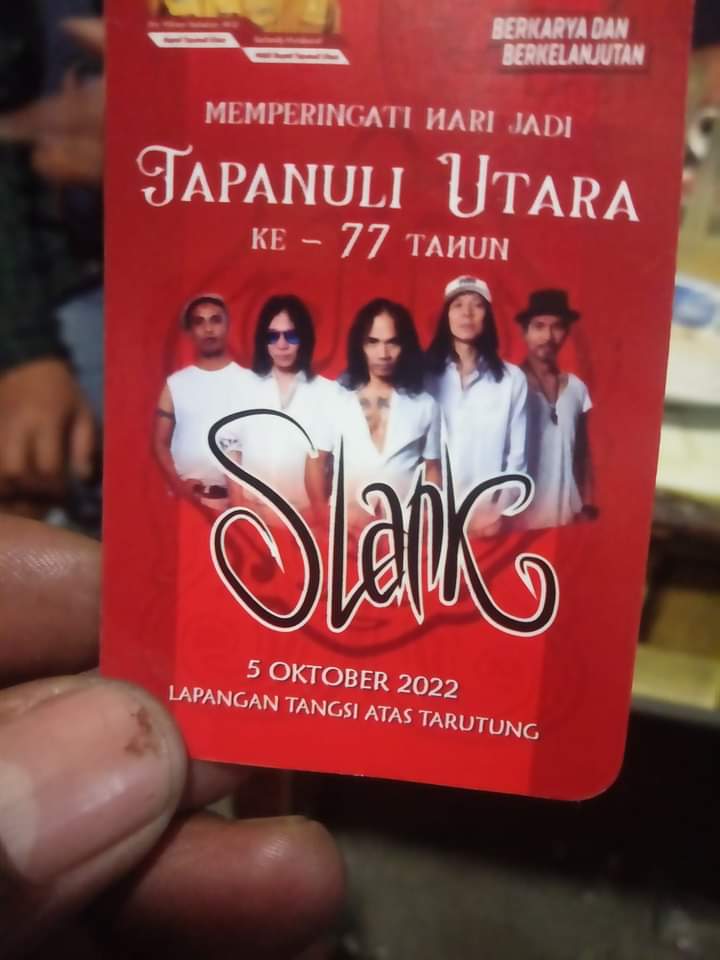 IGNews | Taput – Beredar informasi di Kabupaten Tapanuli Utara – Sumatera Utara bahwa bayaran artis papan atas Grup Band Slank yang datang menghibur masyarakat Tapanuli Utara untuk acara Hari Ulang Tahun (HUT) Kabupaten Tapanuli Utara yang ke- 77 yang dijanjikan dengan nilai kontrak Rp. 950.000.000 ternyata hanya dibayarkan Rp. 350.000.000 dan sisanya Rp. 600.000.000 lagi konon katanya dibawa kabur oleh Ketua Dewan Kesenian Daerah (DKD) Kabupaten Tapanuli Utara inisial GB.