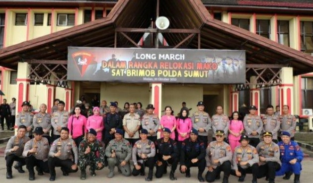 IGNews | Medan – Pindahnya Mako Brimob Polda Sumut dari jalan Hasyim kejalan Bhayangkara diwarnai dengan parade Longmarch pataka. Longmarch pataka  dipimpin langsung Kapolda Sumut Irjen. Pol. Drs. RZ Panca Putra Simanjuntak M.Si didampingi Irwasda Kombes. Pol. Armia Fahmi, Dansat Brimob Kombes. Pol. Christiyanto Goetomo serta sejumlah Pejabat utama (PJU) Polda Sumut, Minggu (30/10/2022).