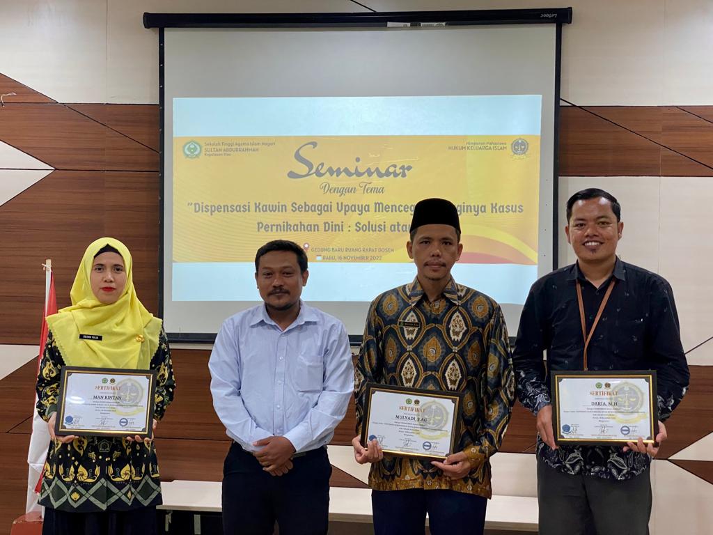 Melihat maraknya kasus pernikahan dini, HIMA HKI STAIN SAR Kepri mengadakan seminar Hukum Keluarga Islam dengan tema “Dispensasi Nikah Mencegah Tingginya Kasus Pernikahan Dini di Kepri”.