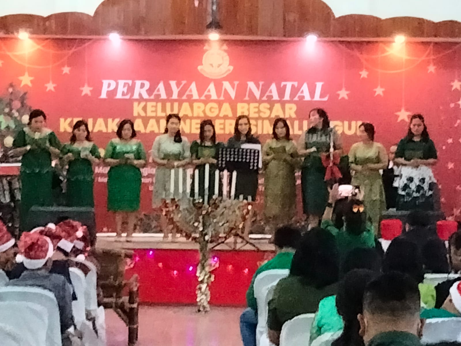 IGNews | Simalungun – Perayaan Natal Keluarga Besar Kejaksaan Negeri (Kejari) Simalungub berlangsung khidmat bernagai rangkaian acara digelar mulai dari liturgi, Vocal Group IBU IAD, vocal Group Mamre dan Karyawati Kejari Simalungun berkumandang menyambut kelahiran Sang Yesus Juruselamat Dunia, Kamis malam (8/12/2022).