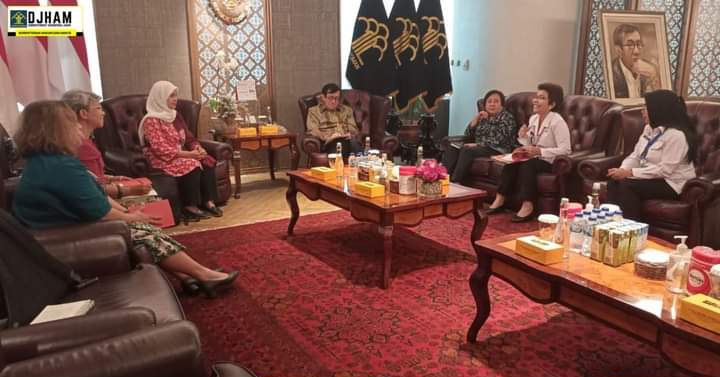 IGNews | Jakarta – MenkumHAM RI, Yasonna H Laoly turut didampingi Plt Dirjen HAM yang diwakili Direktur Instrumen HAM, Betny Purba beserta Staf Khusus Hubungan Luar Negeri KemenkumHAM, Linggawati menerima audiensi Cedaw Working Grup Indonesia (CWGI) di ruang kerja MenkumHAM. Kedua belah pihak membahas terkait perkembangan terkini upaya Pemerintah untuk menangani diskriminasi terhadap perempuan di tanah air, Rabu (18/1/2023).