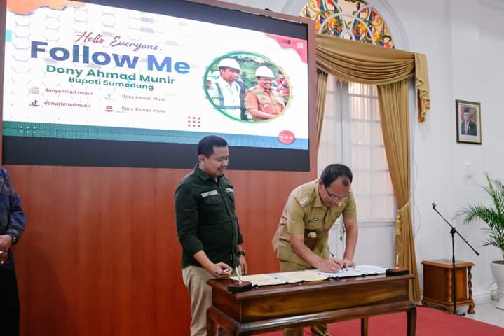 IGNews | Sumedang – Bupati Humbang Hasundutan, Dosmar Banjarnahor SE tandatangani MoU dengan Bupati Sumedang Dr. H. Dony Ahmad Munir ST, MM terkait penanganan stunting di Gedung Negara, Sumedang Jawa Barat, Selasa (7/2/2023).