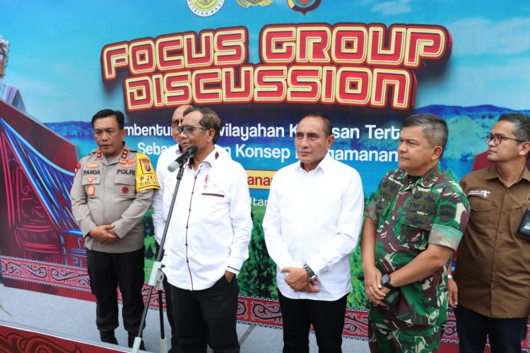 IGNews | Parapat – Kapolda Sumut, Irjen. Pol. Drs. RZ Panca Putra Simanjuntak M.Si memberikan sambutan dan paparan dalam kegiatan Focus Group Discussion (FGD) pembentukan kesatuan kewilayahan kawasan tertentu sebagai konsep pengamanan Destinasi Pariwisata Super Prioritas (DPSP) Danau Toba, Rabu (22/2/2023).
