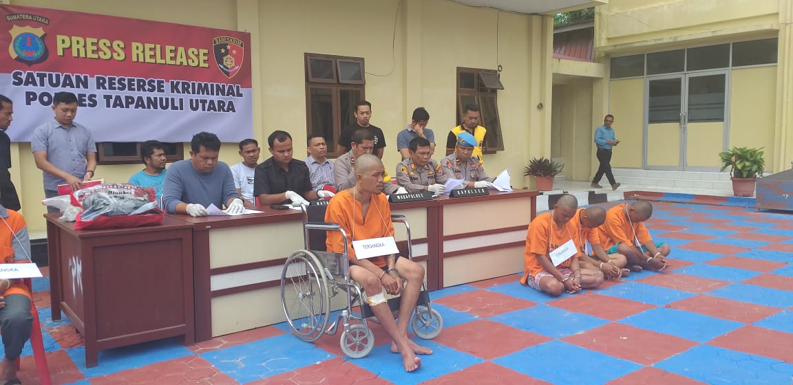 “Atas hal itu, kita sudah menetapkan 4 orang tersangka yakni Aron Panjaitan (31) warga Desa Sipultak kecamatan Pagaran Taput, Pokki Sinaga (28) warga Desa Parulokan Kecamatan Lintong Nihuta kabupaten Humbahas, Rajes Pakpahan (30) warga Desa Parulokan Kecamatan Lintong Nihuta kabupaten Humbahas dan Erikson Sinaga (28) warga Lumban ina-ina Kecamatan Pagaran Taput” jelasnya.
