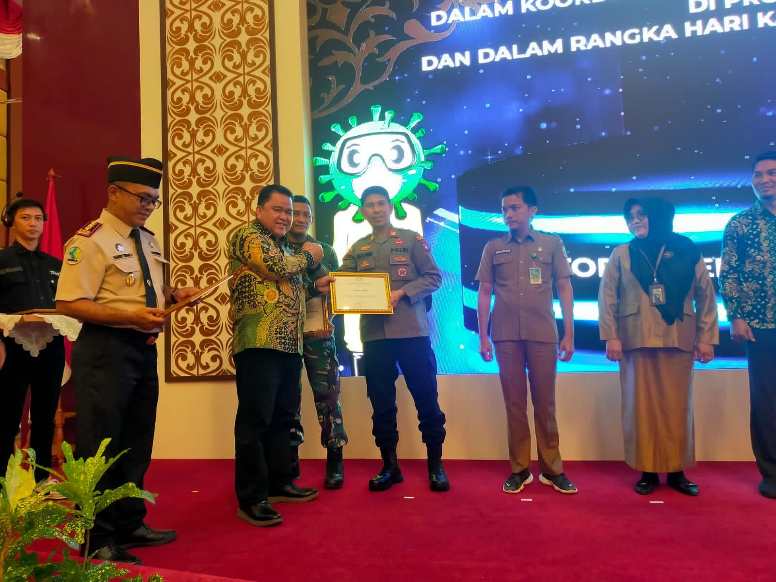 Pada kesempatan tersebut Kapolres Lingga, AKBP Fadli Agus SIK, MH diwakili Kabag Ops Polres Lingga, AKP. Edy Supandi SH menerima penghargaan yang diserahkan langsung oleh Direktur Pencegahan dan Pengendalian Penyakit Provinsi Kepulauan Riau, Dr. dr. Maxim Rem Rondonuwu DHSN, MARS bertempat di aula kantor Gubernur Kepulauan Riau.
