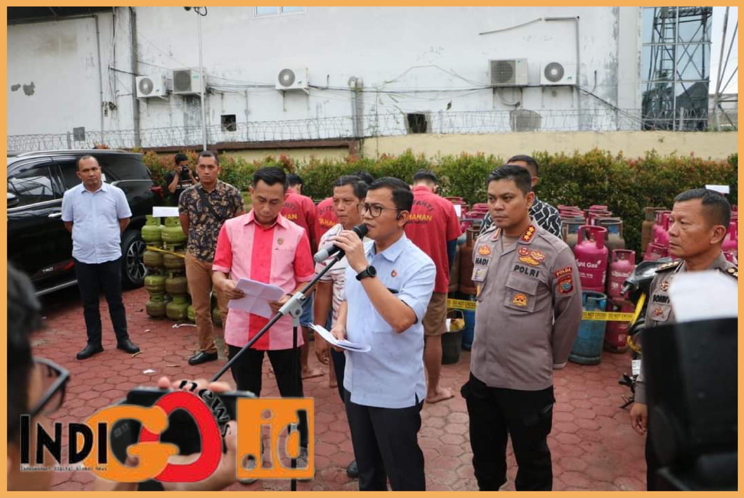Direktur Reskrimsus Polda Sumut, Kombes. Pol. Teddy John Sahala Marbun saat pengungkapan pangkalan gas subsidi di Sunggal, Kamis (10/8).