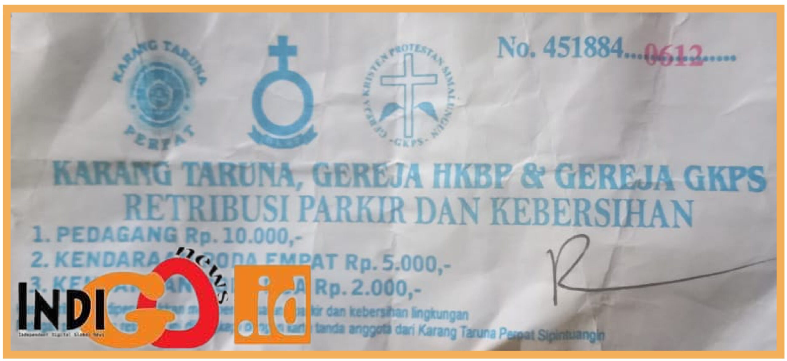 Wajib parkir yang disertaka karcis berlogo Karang Taruna malah mengherankan pada karcis adanya dibubuhi lambang Gereja HKBP dan GKPS, sehingga banyak warga yang setelah menonton pagelaran pernak pernik kemeriahan HUT RI menjadi emosi dan protes.