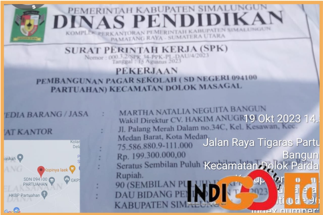 IGNews | Simalungun – Pemborong Sahman Saragih yang konon memiliki 60 paket pekerjaan di Dinas Pendidikan Simalungun, diantaranya menggunakan nama isterinya Martha Natalia Neguita Bangun sebagai pelaksana kegiatan sebagai Wakil Direktur CV. Hakim Anugrah yang beralamat di Medan, Jumat (27/10/2023).