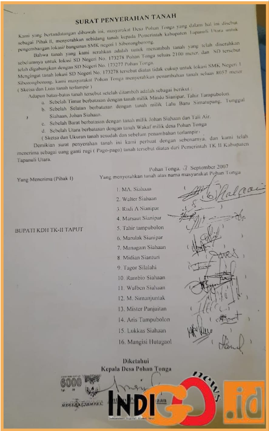 Namun lanjut Ridwan Siringoringo mengucapkan “Setelah kita melakukan pengecekan, ternyata pada Sertifikat SMKN 1 Siborongborong yang dikeluarkan oleh pihak BPN, luas lahan menjadi 5231 Meter². Untuk itu, ini akan segera kita laporkan, biarlah yang berkaitan yang menandatangani surat dipanggil pihak Aparat Penegak Hukum”.