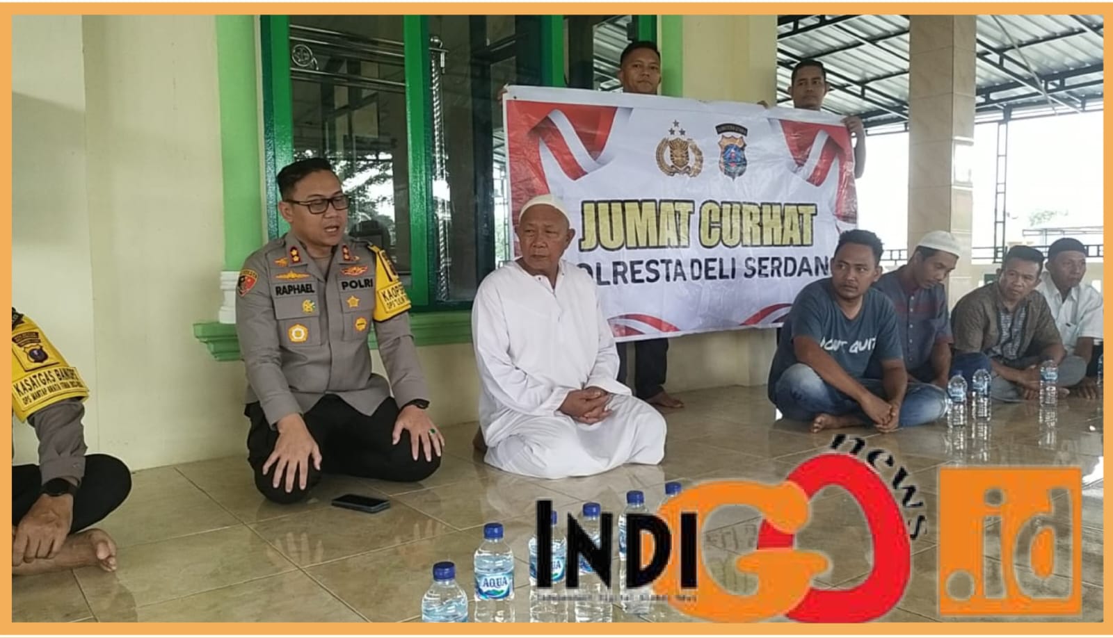 IGNews | Deliserdang – Kapolresta Deliserdang, AKBP. Raphael Sandhy Cahya Priambodo SIK bersama dengan Kabag Ren Kompol. Mahyu Daniel Noor, Kabag Log Kompol. Soedarjanto dan Kasat Narkoba Kompol. Sabastian Ramahadim Saurman Saragih S.Sos, SIK duduk bersama masyarakat di Mesjid Rahmatullah Jalan Keluarga Kelurahan Paluh Kemiri Kecamatan Lubuk Pakam, Kabupaten Deliserdang – Sumatera Utara, Jumat (22/12/2023).