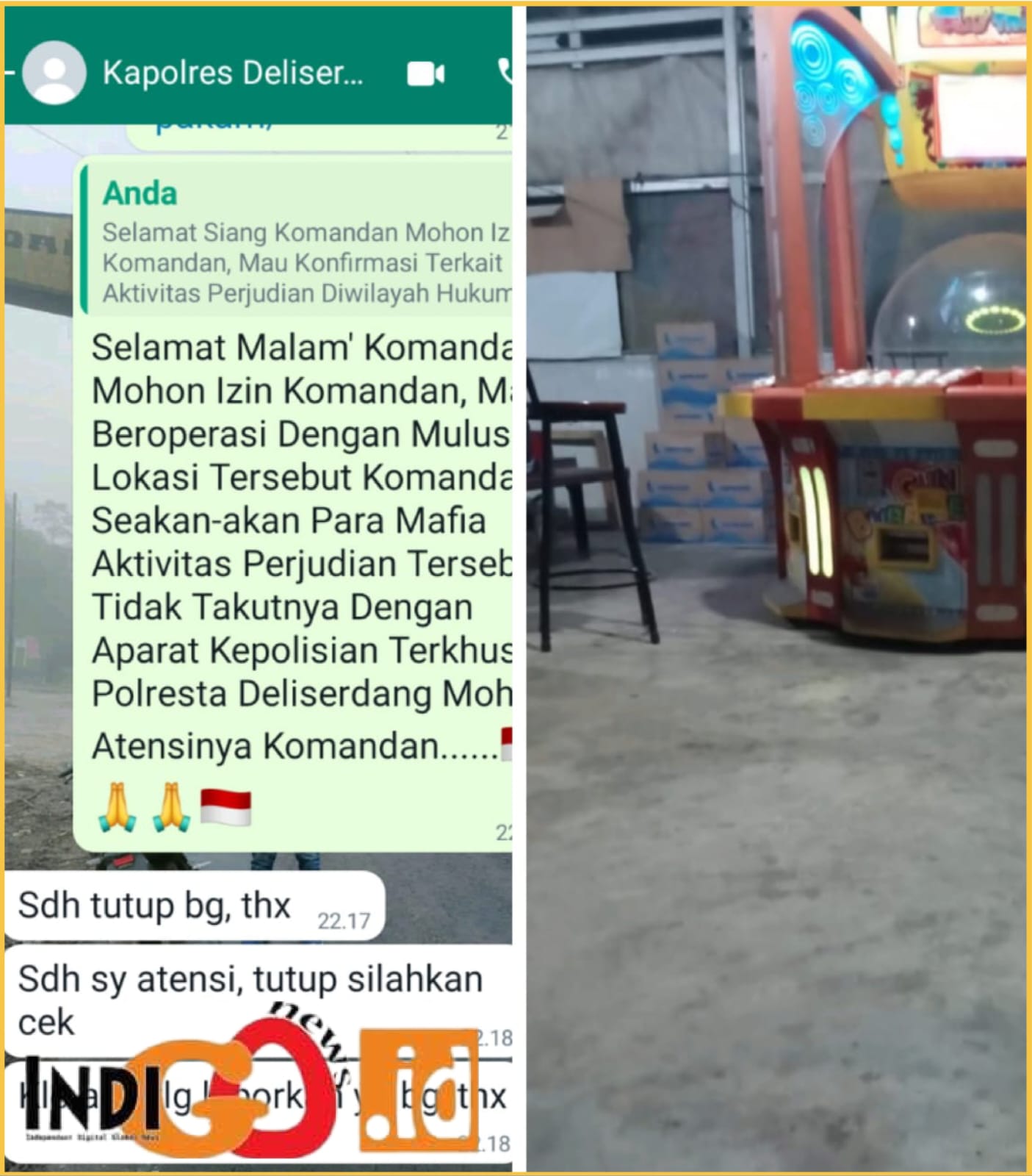 Anehnya, Kapolresta Deliserdang pada hari Jumat silam (15/3/2024) kepada reporter Indigonews melalui pesan whatsapp mengatakan bahwa aktivitas judi tersebut sudah tutup.