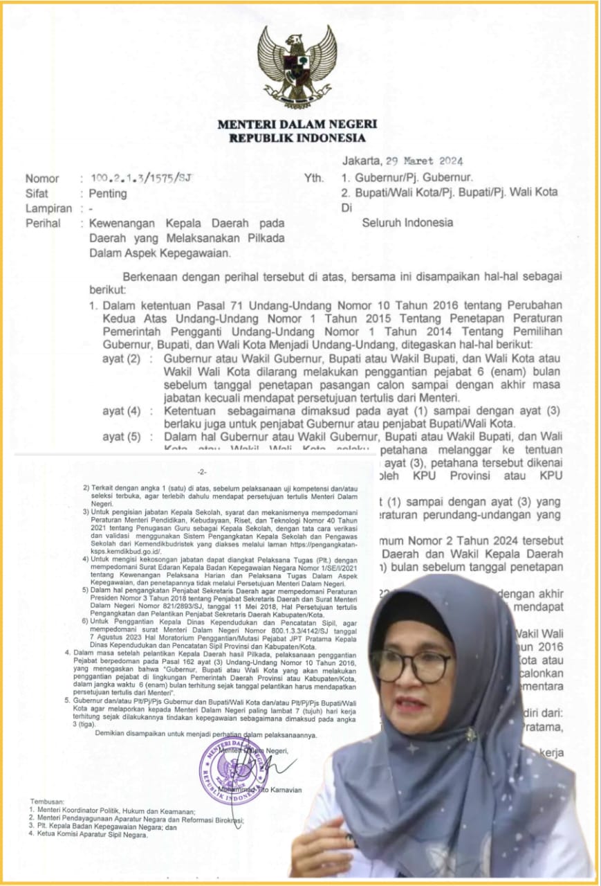 “Pada Surat Edaran Menteri Dalam Negeri pada poin ke- 3 jelas mengatakan: Mulai tanggal 22 Maret 2024 sampai akhir masa jabatan Kepala Daerah, dilarang melaksanakan pergantian pejabat kecuali memdapat persetujuan Menteri Dalam Negeri secara tertulis” tegas Syamp.