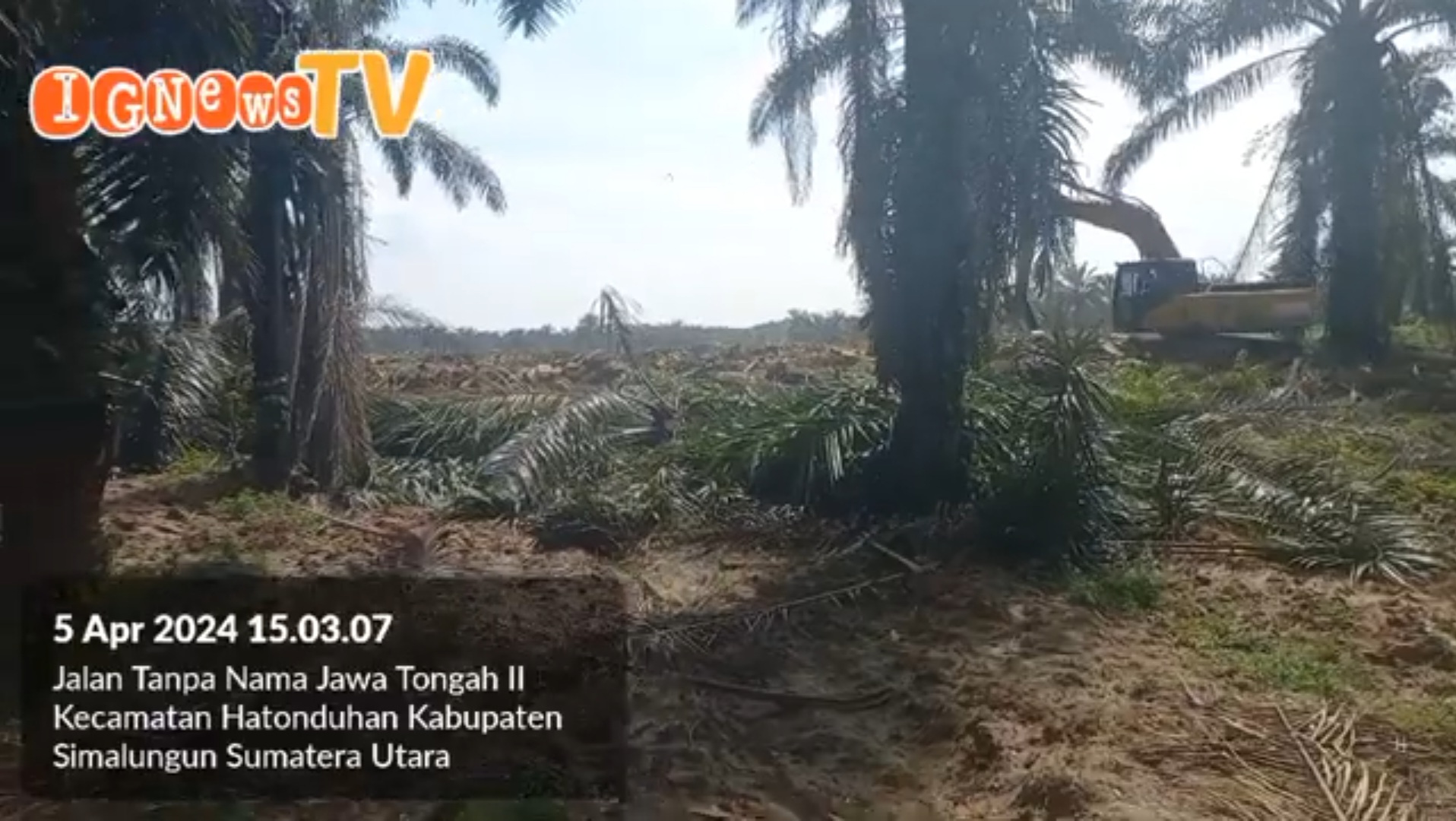 iGNews | Simalungun – Pelaksanaan replanting kelapa sawit di Afdeling 1 dan Afdeling 2 Kebun Unit Hatonduhan, Kabupaten Simalungun dibawah naungan PTPN IV Medan terkesan asalan dikerjakan, dimana vendor pelaksana kegjatan hanya melakukan cepingan pada batang pohon kelapa sawit yang ditumbanv tetapi mulai dari ujung pohon tepat pada pelepah daun tidak dipotong jadi bagian bagian kecil tetapi langsung ditumpuk panjang panjang, Jumat (5/4/2024).