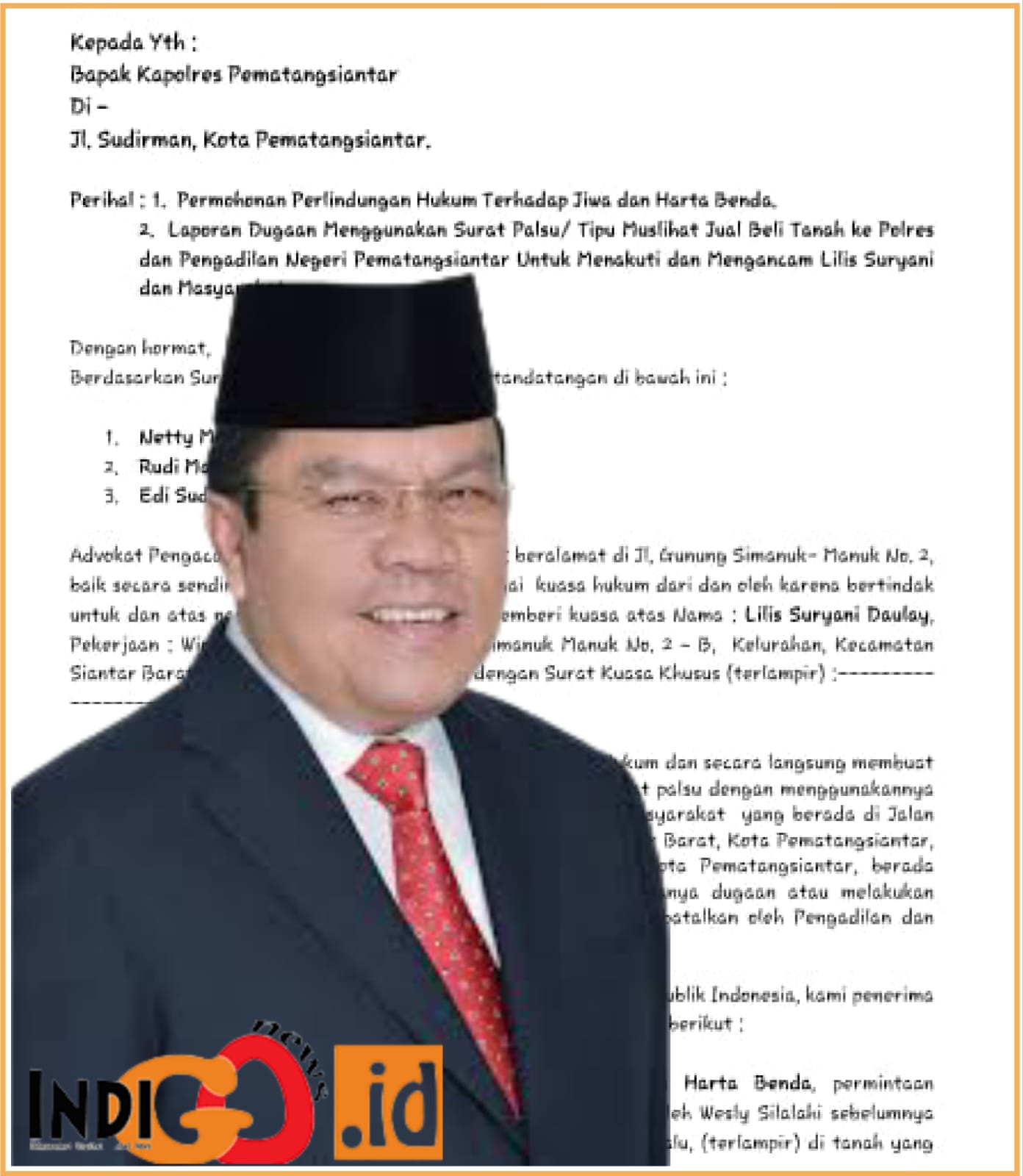 “Bahwa dalam perjalanan perkara tersebut, tidak pernah muncul nama Wesly Silalahi, baik sebagai Pelapor di Kepolisian dan terlapor, maupun sebagai penggugat atau tergugat dan tergugat intervensi di Pengadilan Tata Usaha Negara dan Pengadilan Negeri Pematangsiantar sejak tahun 2021 sampai saat ini proses perkara masih berjalan” ujar pengacara LSD.
