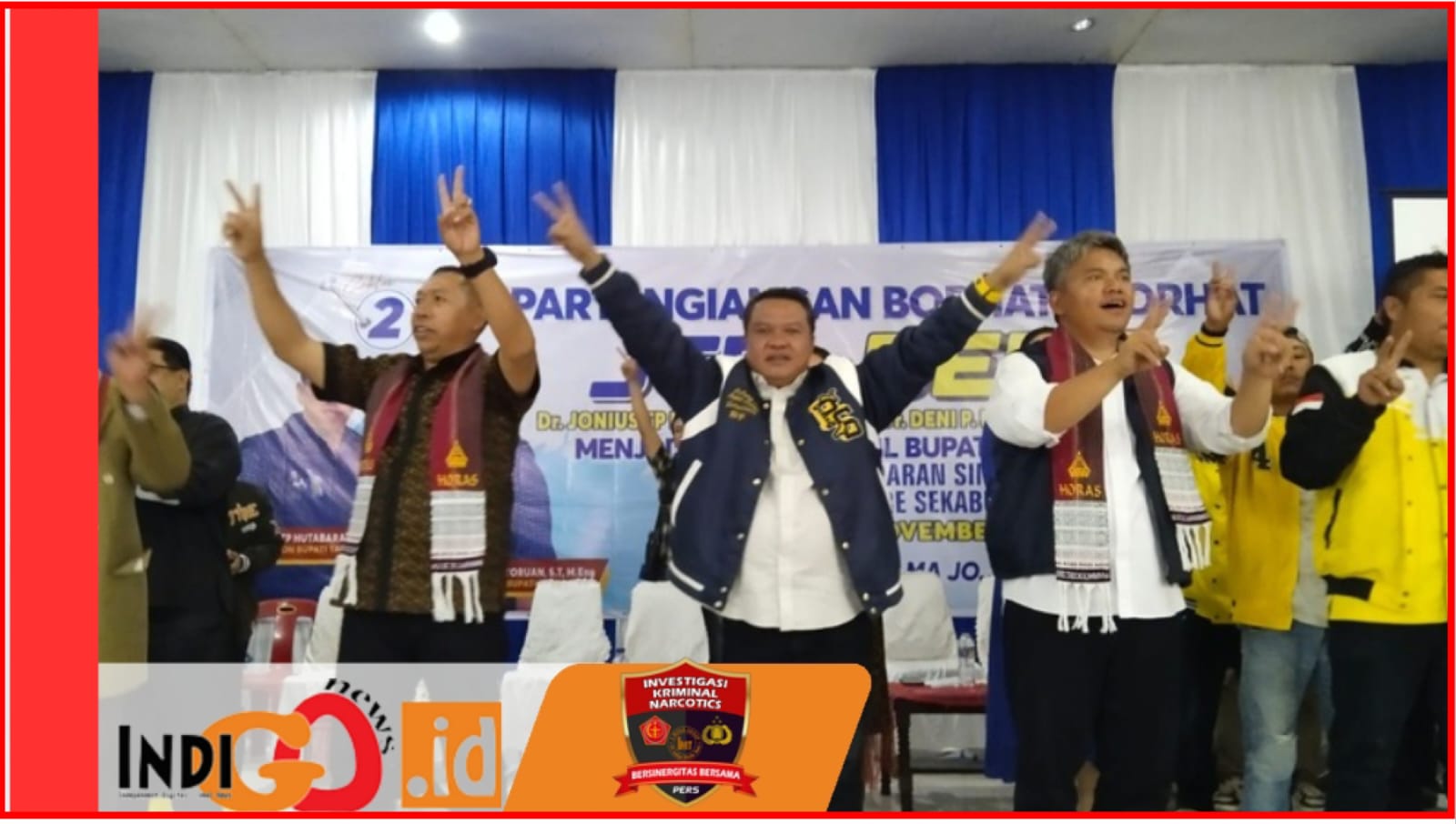 iGNews | Taput – Ribuan warga komunitas marga Sinaga, Boru, Bere, Ibebere se- Tapanuli Utara (Taput) berikrar untuk menangkan Pasangan Calon Bupati Nomor Urut 2 JTP – Dens dipilkada 27 November mendatang. Ikrar diucapkan sekitar 1.200 orang yang hadir di partangiangan borhat borhat JTP – Dens di Gedung Nasional Tarutung, Kamis (14/11/2024).