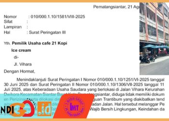 Read moreINDIGONEWS - Payung, meja dan kursi milik Cafe 21 Kopi Ice Crean berada dibadan jalan Vihara Siantar Square, Kelurahan Dwikora, Kecamatan Siantar Barat, Kota Pematangsiantar terbukti telah mengakibatkan gangguan trantibum sehingga banyak...