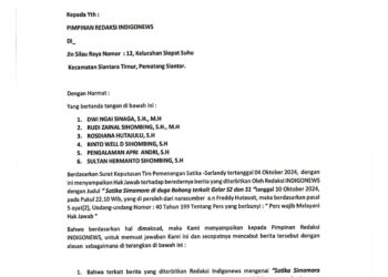 iGNews | Taput - Redaksi Indigonews menerima surat hak jawab dari Tim Kuasa Hukum dan Advokasi Paslon Nomor Urut 1 Satika Simamora, SE, MM - Sarlandy Hutabarat SH terkait pemberitaan Indigonews.id yang...
