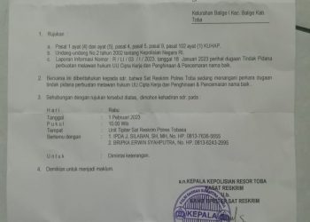 Read moreIGNews | Toba - Untuk kedua kalinya Klarifikasi surat dari Polres Toba, Nomor: B/ 157/ II/ 2023 Reskrim. Perihal dugaan perbuatan melawan hukum UU Cipta Kerja dan penghinaan, pencemaran nama baik yang...